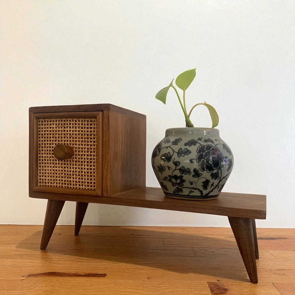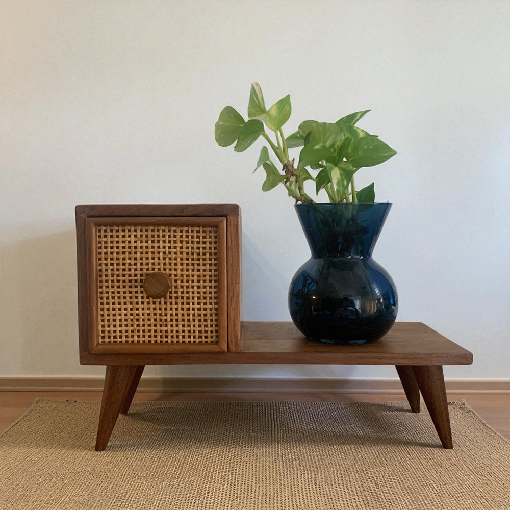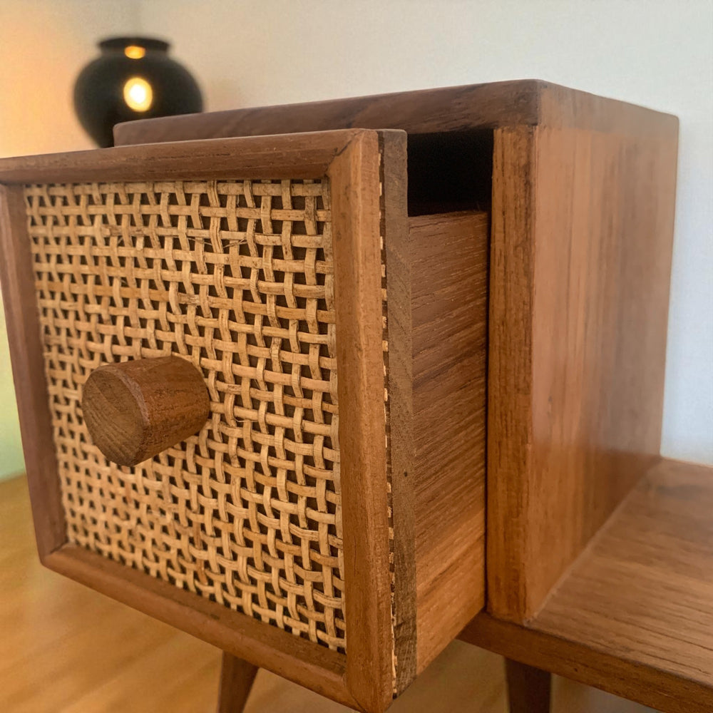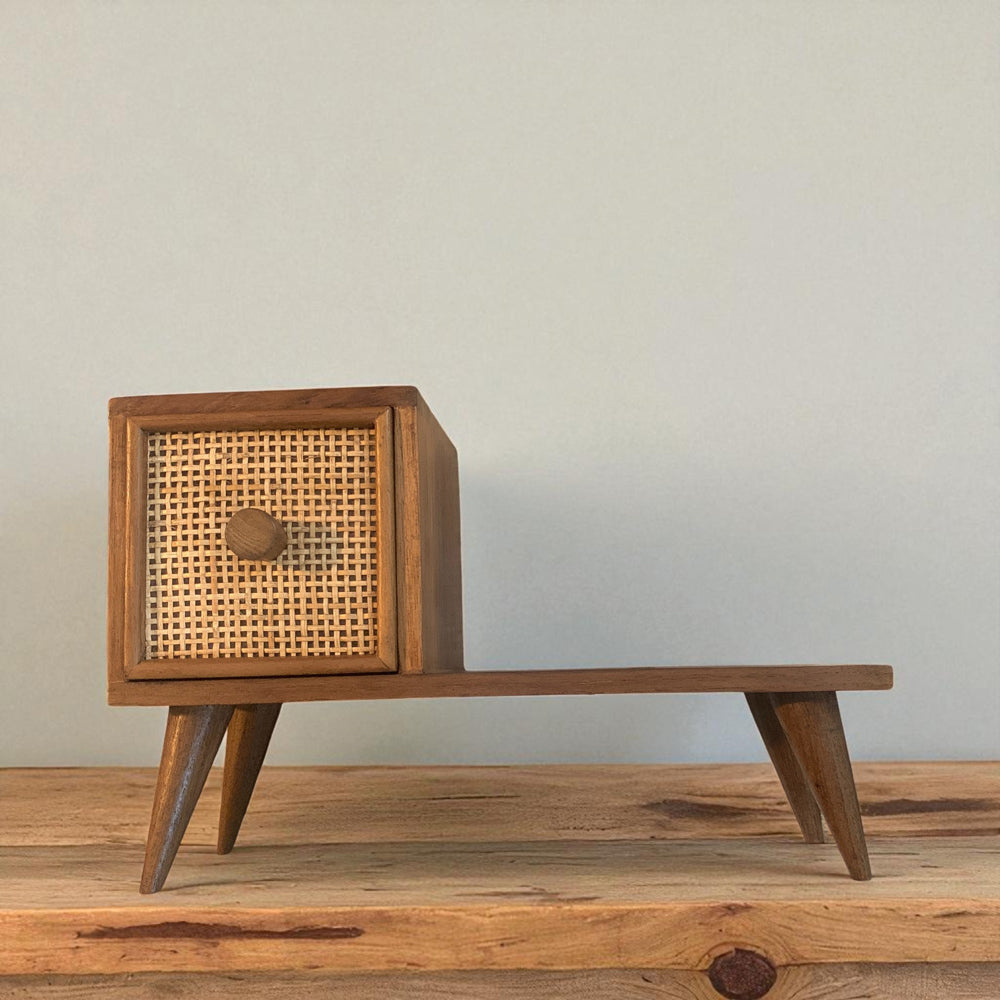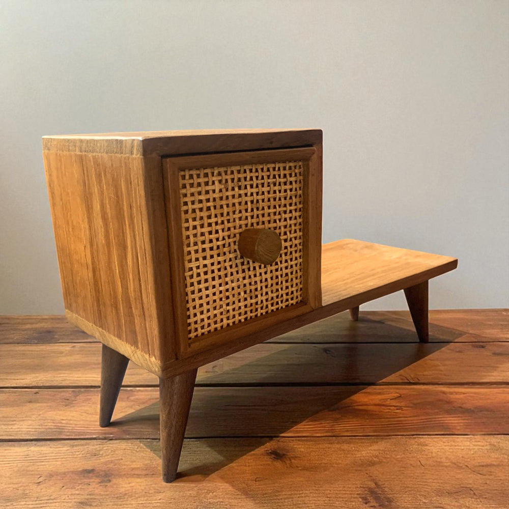 ラタン引き出し × チーク無垢材 スモールスタンド ATHA2508-2