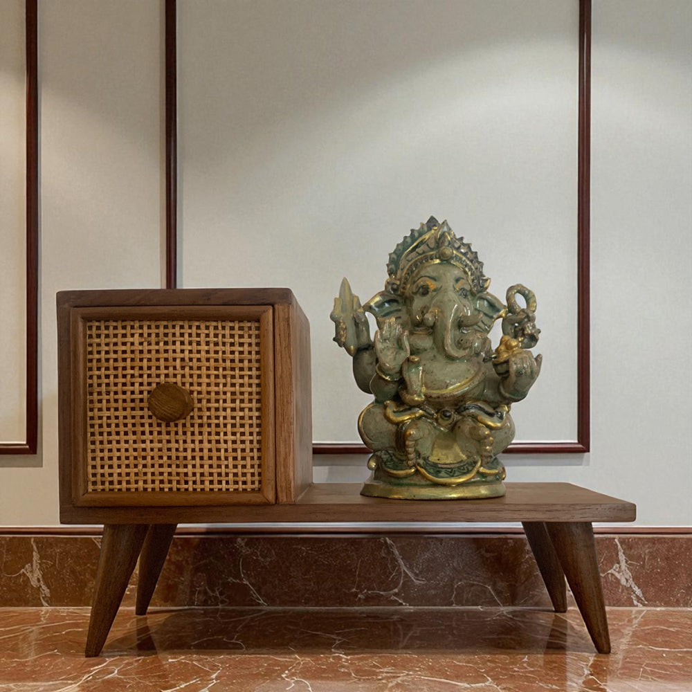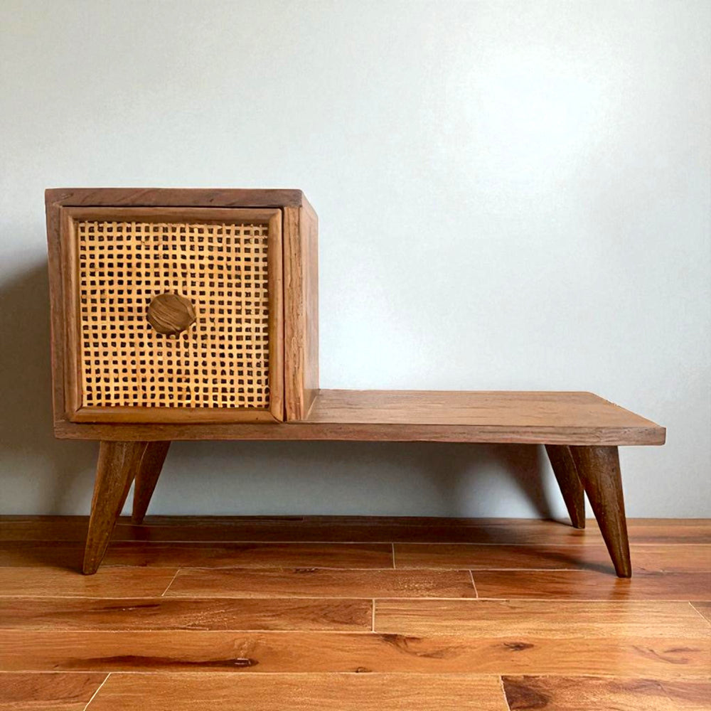 【アジアン雑貨】チーク無垢材 × ラタン 引き出し付き スモールラックスタンド