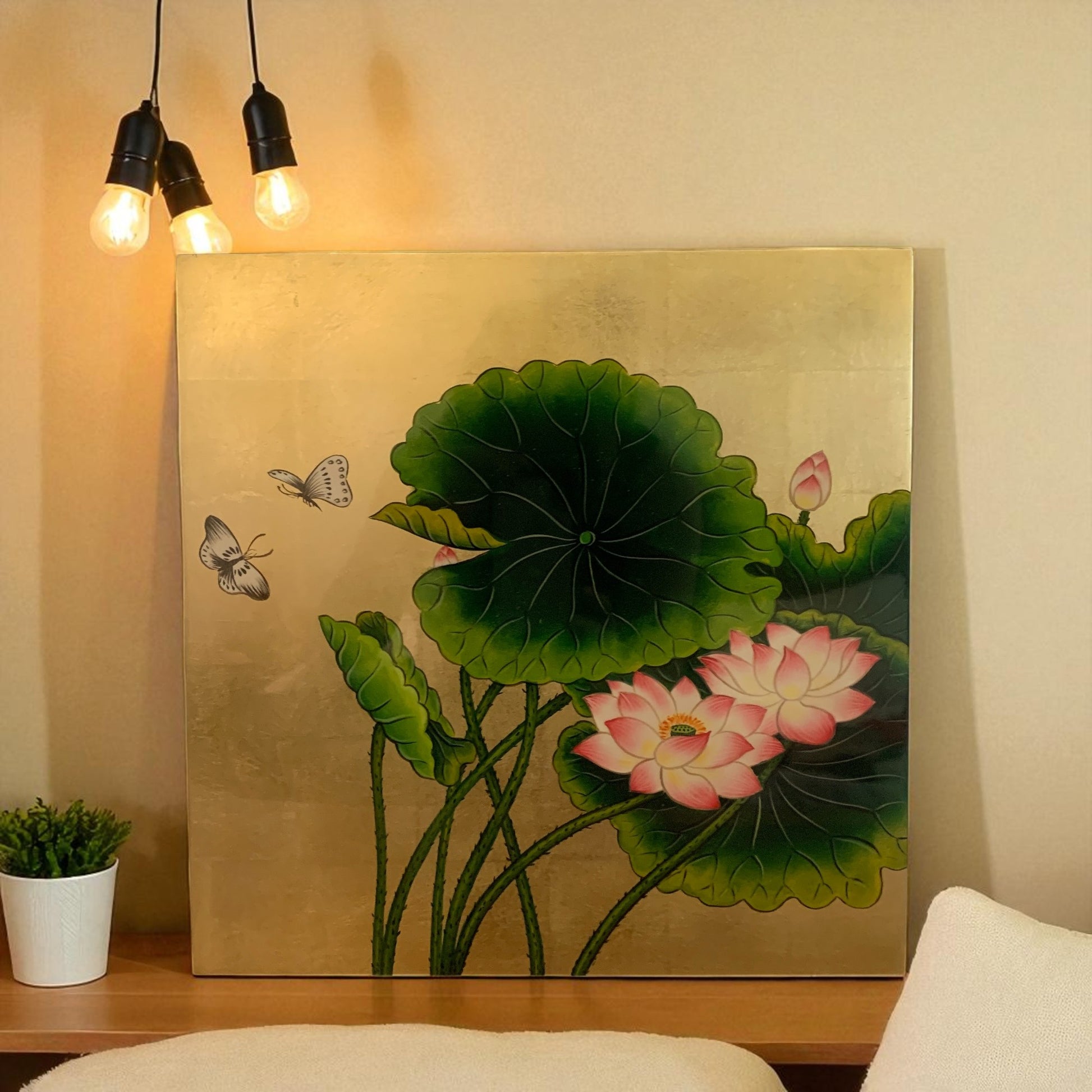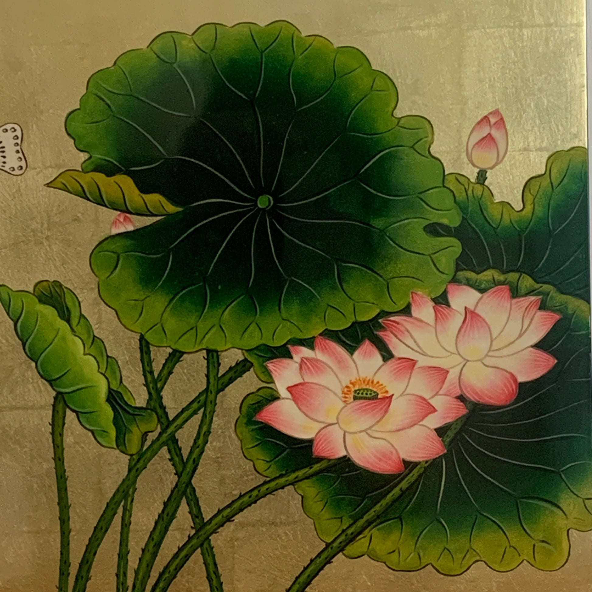 ベトナム ラッカーアートゴールドリーフ 蓮・蝶 30x30cm 2508-4