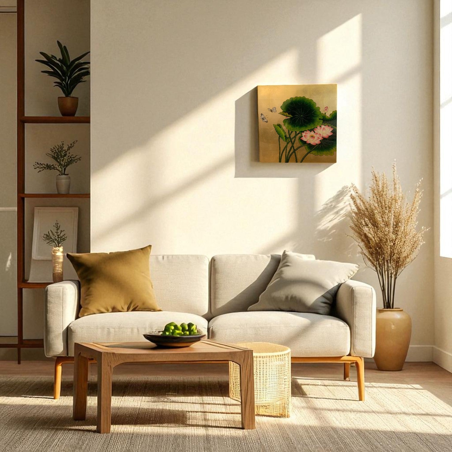 ベトナム伝統のラッカーアート作品。漆の上に贅沢に金箔(ゴールドリーフ)を施し、神秘的な蓮(ロータス)を丁寧に手描きで表現しています。蓮の周囲には舞う蝶が描かれ、生命力と優美さを感じさせる逸品。漆ならではの深みある光沢と、金箔の華やかさが融合したラッカーアートは、ベトナム漆芸の魅力を存分に楽しめます。