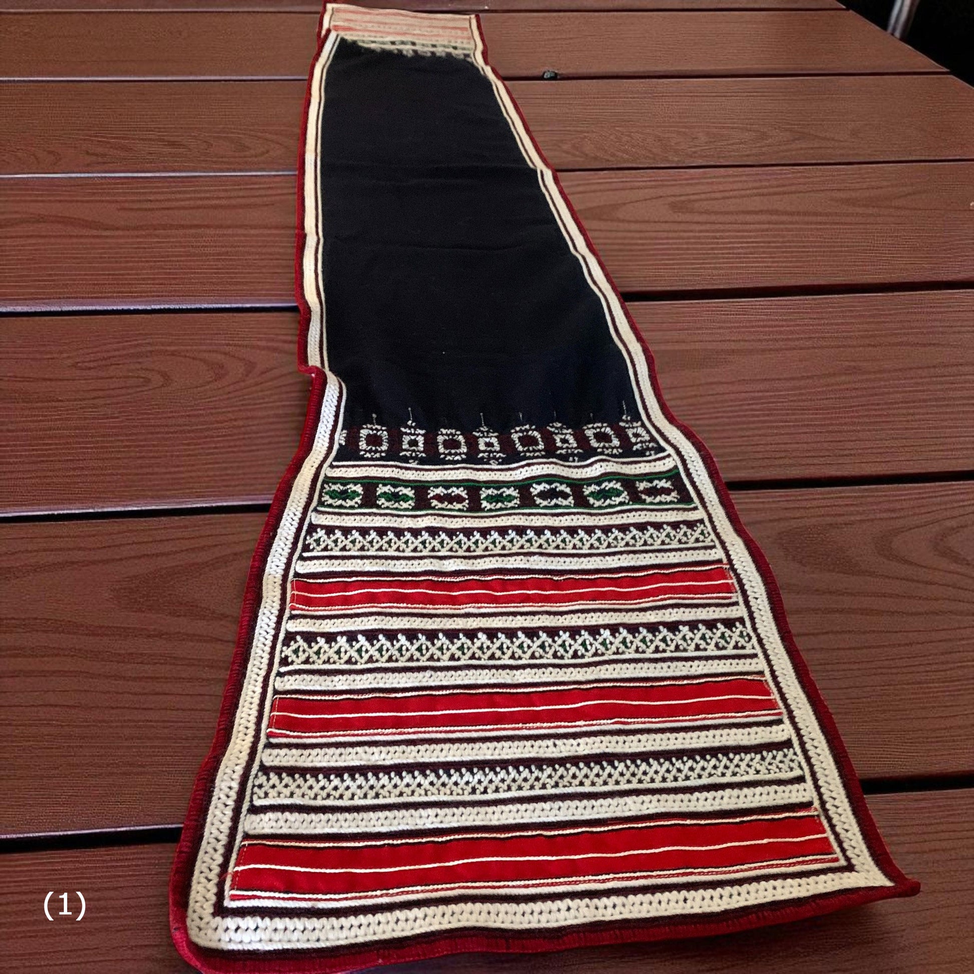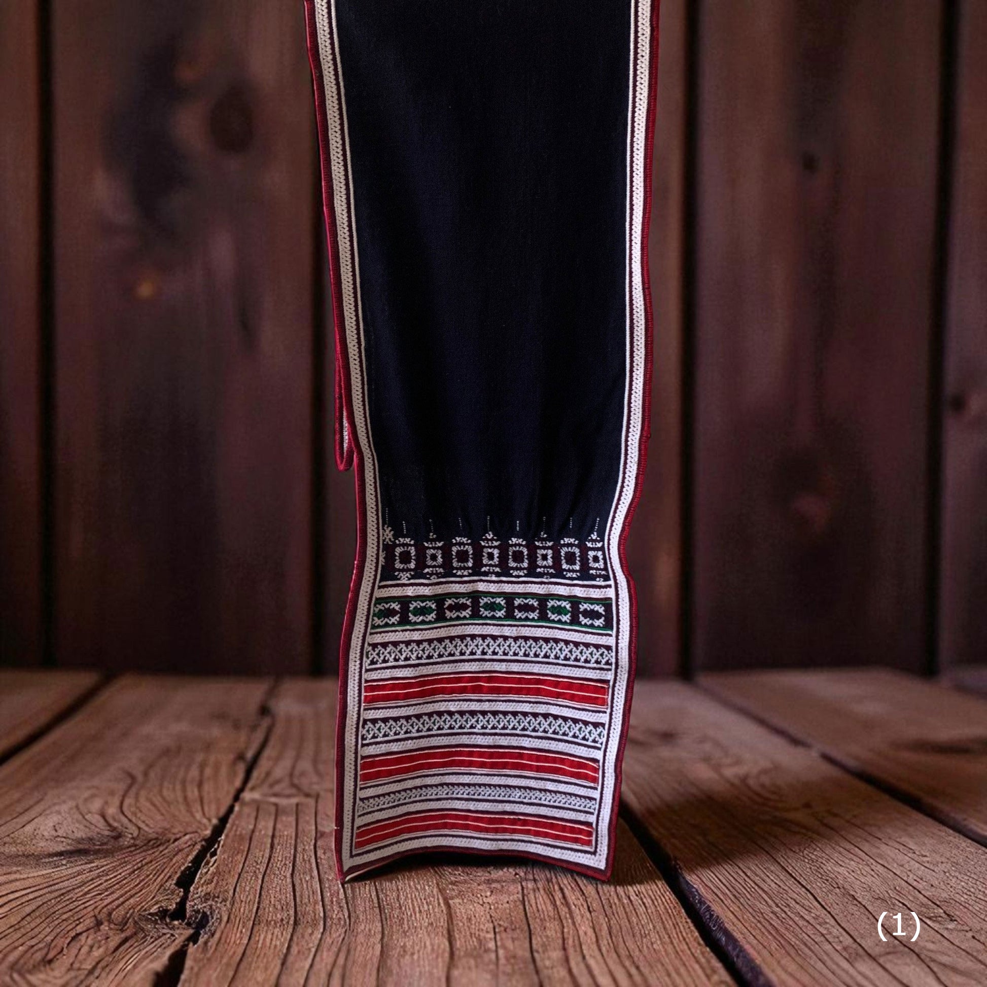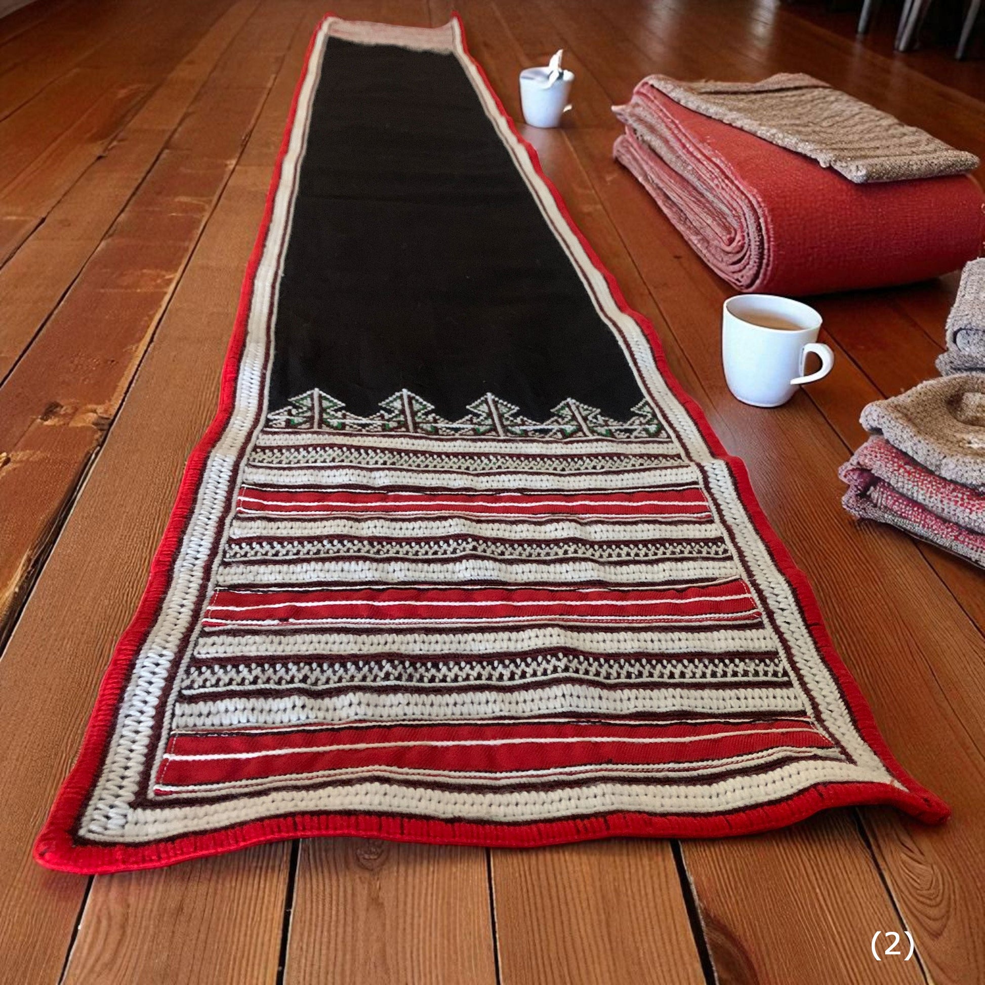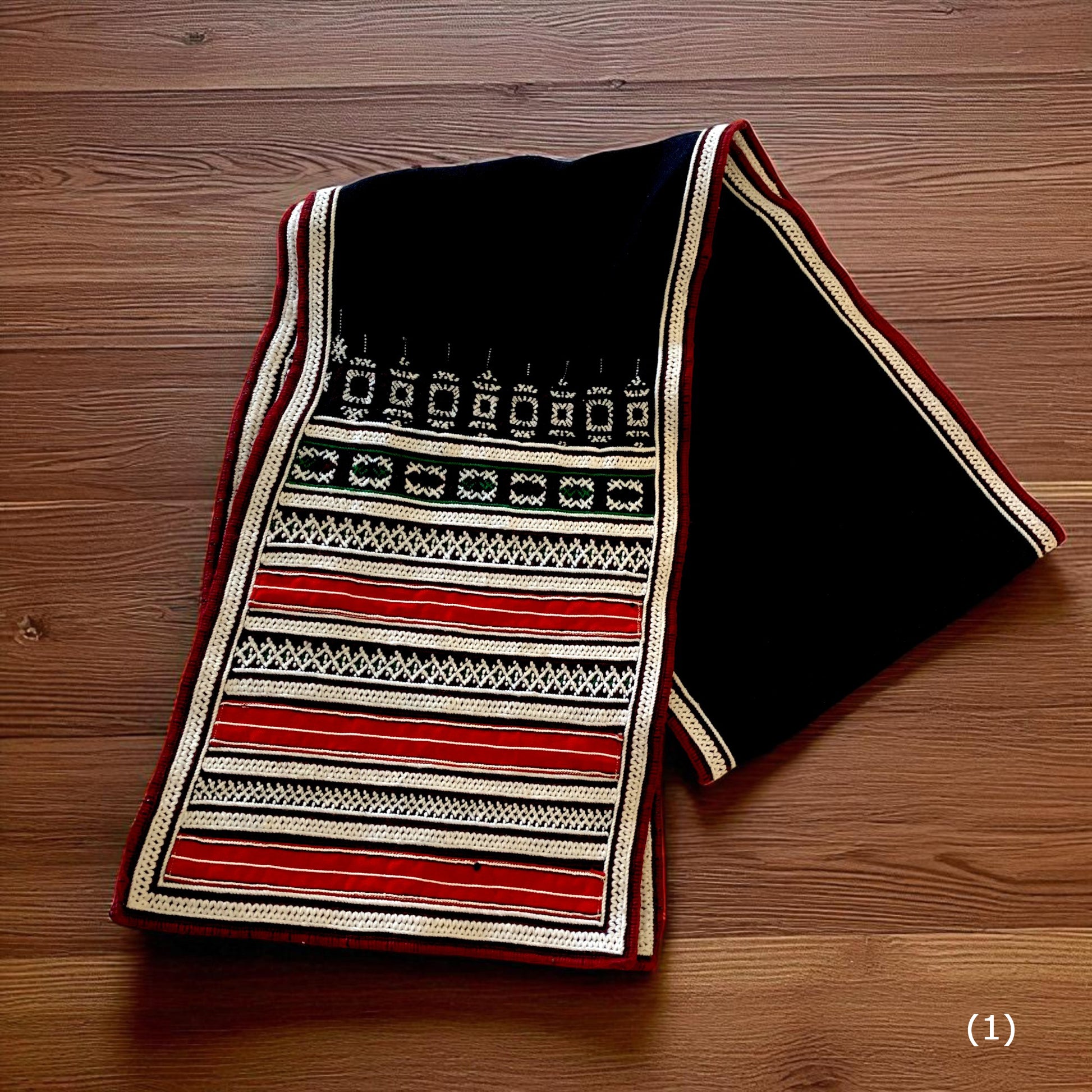 ベトナム山岳民族が一枚一枚手織りで仕上げた伝統織布を使用したテーブルランナー。赤や黒を基調とした幾何学模様が美しく、空間に温もりと民族的なアクセントを加えてくれます。ハンドメイドならではの力強い織り柄と繊細なデザインは、アジアン雑貨やエスニックインテリア好きの方にぴったり。ダイニングテーブルやサイドボード、壁掛けなど多彩に使える伝統工芸の一点物です。ベトナム織布の魅力を日常に取り入れて、特別な空間を演出してみませんか。