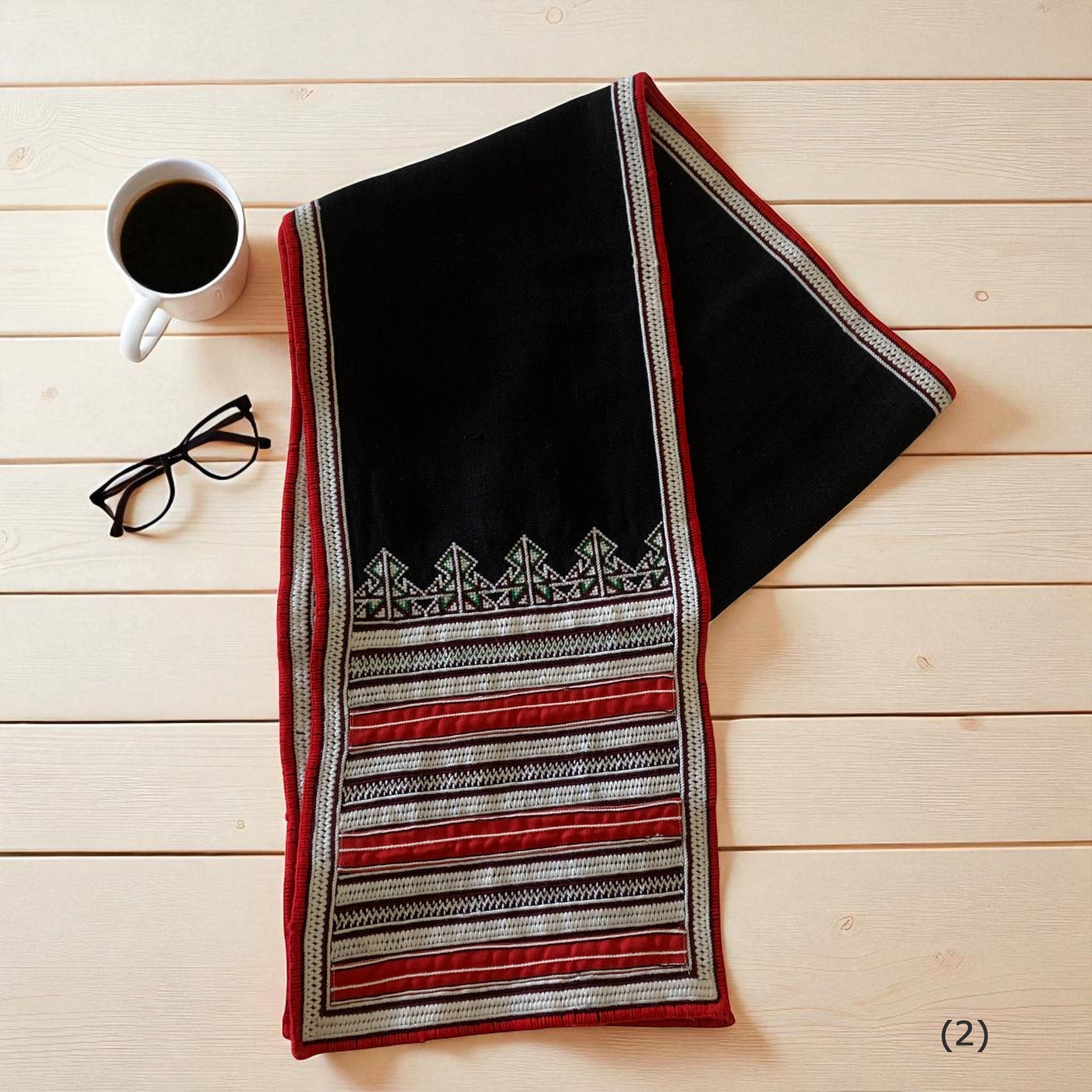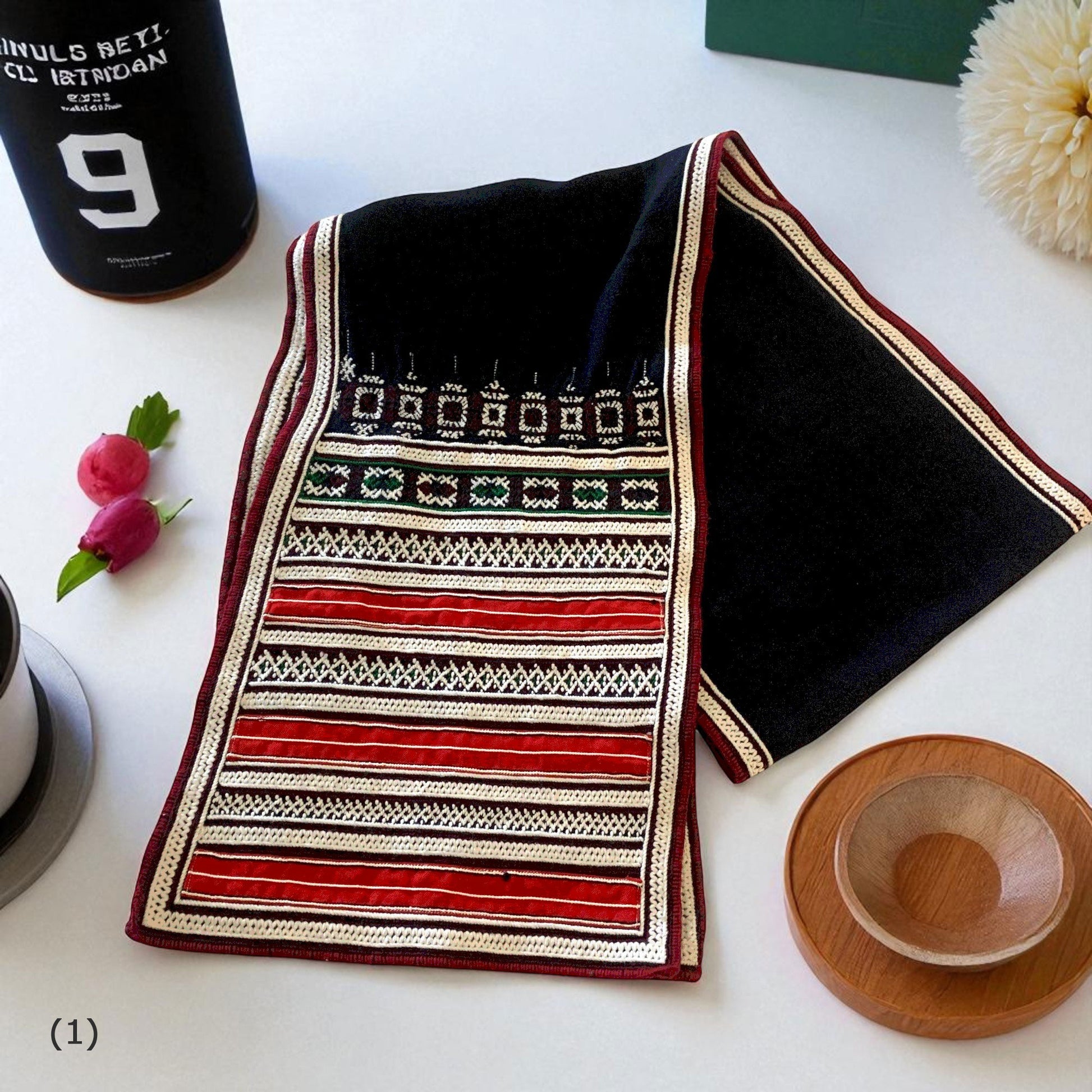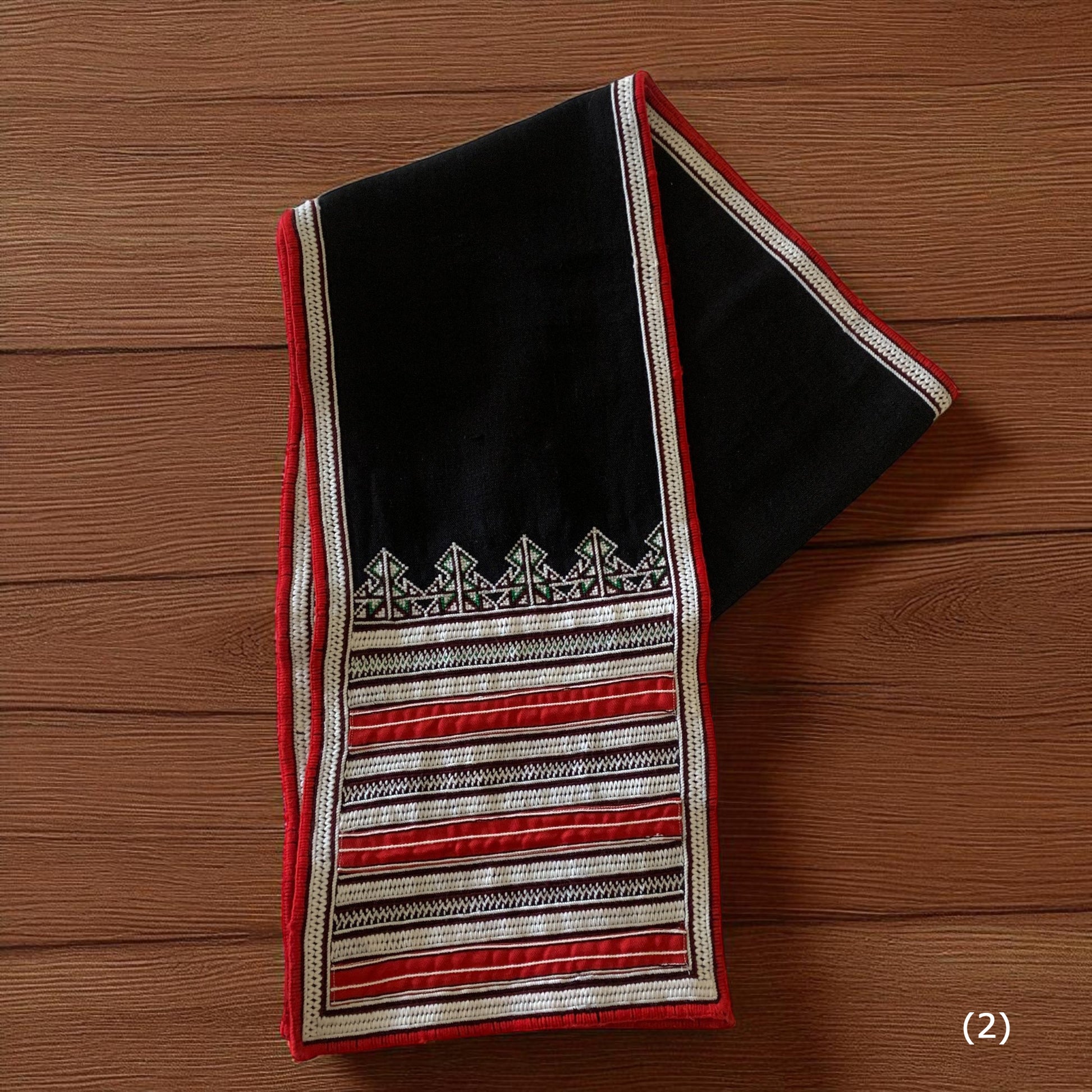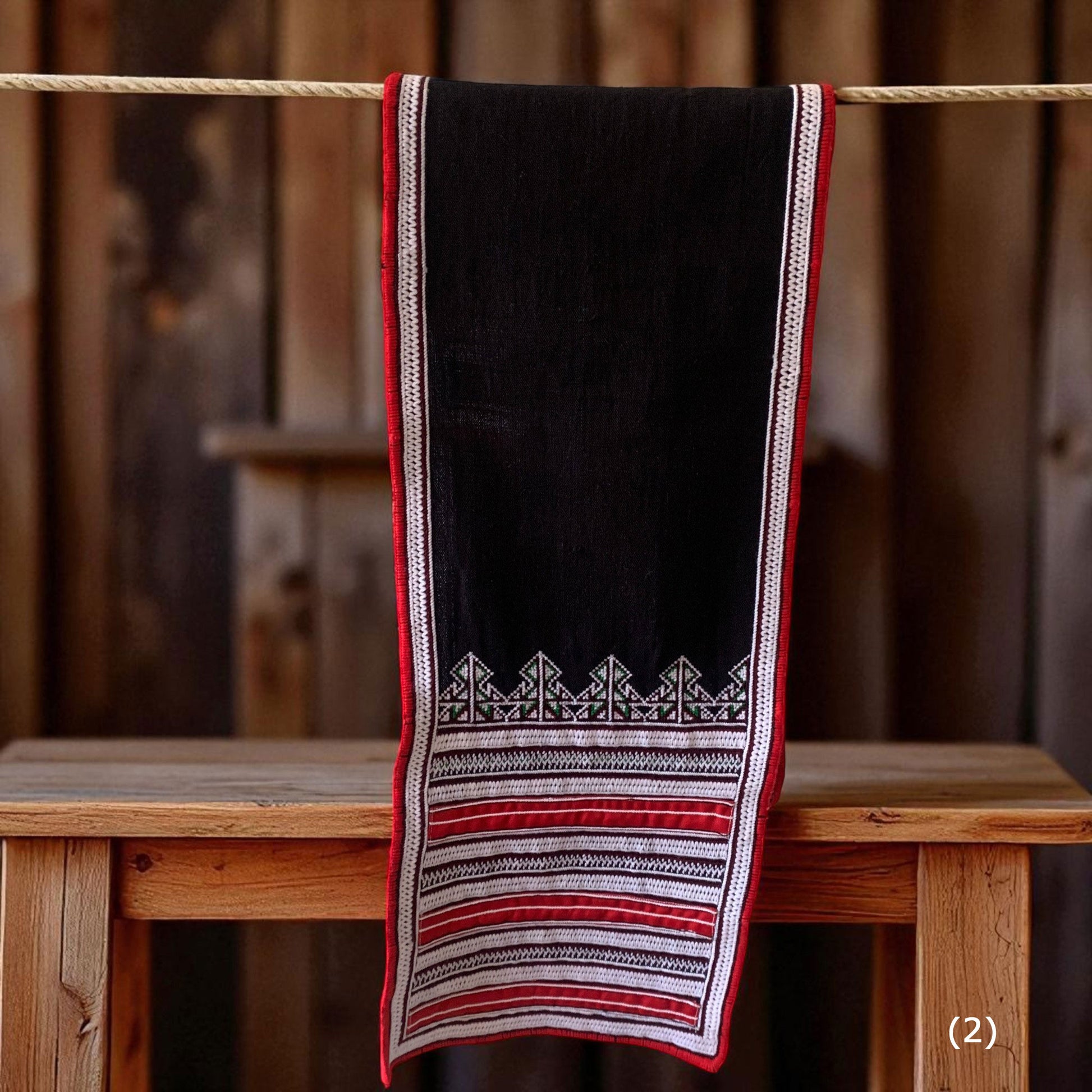 ベトナム山岳民族が一枚一枚手織りで仕上げた伝統織布を使用したテーブルランナー。赤や黒を基調とした幾何学模様が美しく、空間に温もりと民族的なアクセントを加えてくれます。ハンドメイドならではの力強い織り柄と繊細なデザインは、アジアン雑貨やエスニックインテリア好きの方にぴったり。ダイニングテーブルやサイドボード、壁掛けなど多彩に使える伝統工芸の一点物です。ベトナム織布の魅力を日常に取り入れて、特別な空間を演出してみませんか。